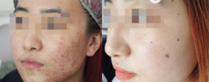 这个美女,21岁,是在成都读艺术院校的大学生。发病范围大,呈弥漫性皮肤损害:白头粉刺,黑头粉刺,脓疱,…
