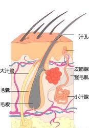一是小汗腺,几乎遍及全身,一般在手掌、足底、面额部最多,其直接开口于皮面的汗孔,排出清澈汗液;二是大汗腺:仅分布于腋窝、脐窝和会阴部,腺体开口于毛囊内。大汗腺的分泌受性腺的影响。青春期前,由于大汗腺尚未成熟,没有分泌功能,不会发生狐臭。到青春期性腺分泌旺盛,大汗腺分泌也较多,其气味也明显出现臭味。事实上,许多患者汗液本身并无臭味,只是其中含有易被细菌分解的物质,由于腋窝皮肤温暖潮湿,通风不良,常有大量细菌滋生,当大汗腺的汗液排泄到皮肤表面后,受到这些细菌的分解,从而发出难闻的臭味。